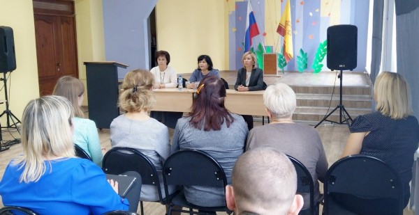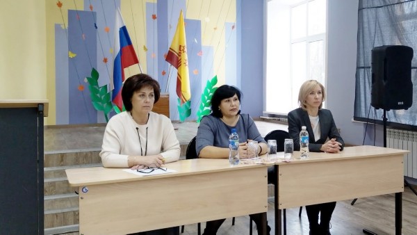 В МБОУ «СОШ №1» г. Шумерля освещали основные вопросы, вынесенные на встречу с коллективом, Карпеева Екатерина Владимировна – руководитель Управления Федеральной службы государственной регистрации, кадастра и картографии по Чувашской Республике – главный государственный регистратор; Туличева Елена Петровна – первый заместитель главы администрации по экономическим и финансовым вопросам – начальник финансового отдела администрации города Шумерля; Полякова Татьяна Владимировна – директор МБОУ «СОШ № 1».