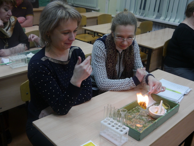 Работа следующих двух площадок прошла при активном участии родительской общественности. Одна из них была организована в форме семинара-практикума «Контрольная закупка: здоровое питание и экспертиза продуктов потребительной корзины». Под руководством Наталии Геннадьевны Лушиной, учителя химии МБОУ «СОШ №1», заслуженного учителя Чувашской Республики в ходе экспериментального исследования родители провели анализ чипсов на наличие жира, крахмала, соли и сделали вывод, что чипсы содержат вещества, вредные для здоровья человека.