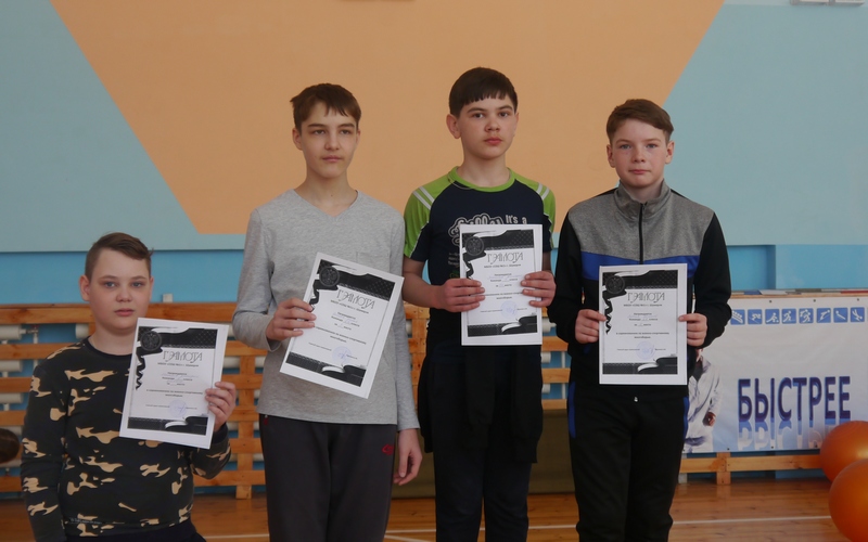 1 место - 8а класс, 2 место – 8в класс и 3 место – 8б класс; среди 6-х классов было проведено личное первенство: 1 место – Тараканова Е. и Машинов Т.; 2 место – Захарова М. и Любаев Е., 3 место – Зайцев И. и Федорова А.